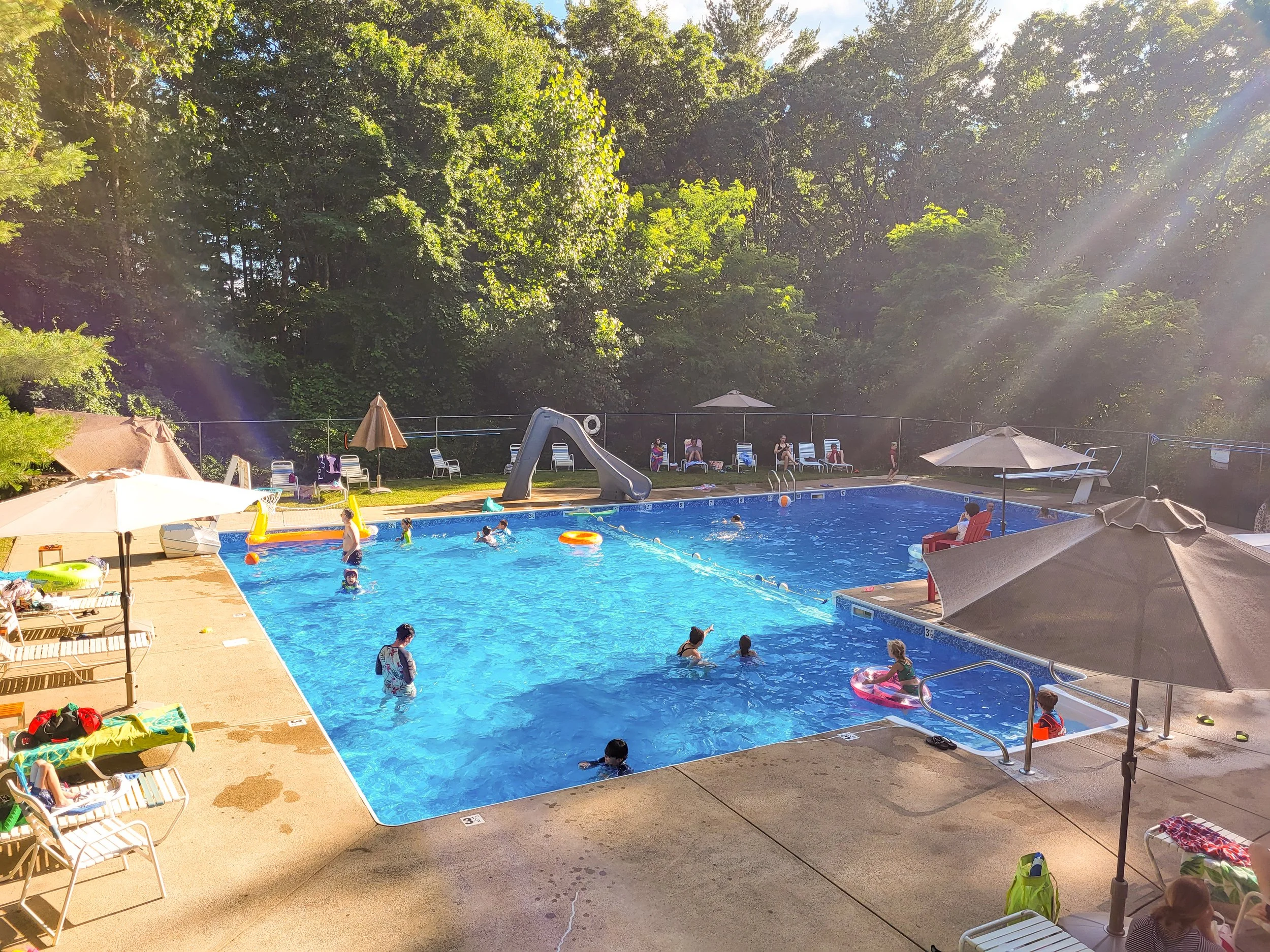 Tucked away in the Westborough woods since 1973, we’re the 50-family secret where the water is clear, the cannonballs are loud, and the 90s never actually ended. No fancy cabanas—just floats, friendship, and the perfect summer camp vibe.